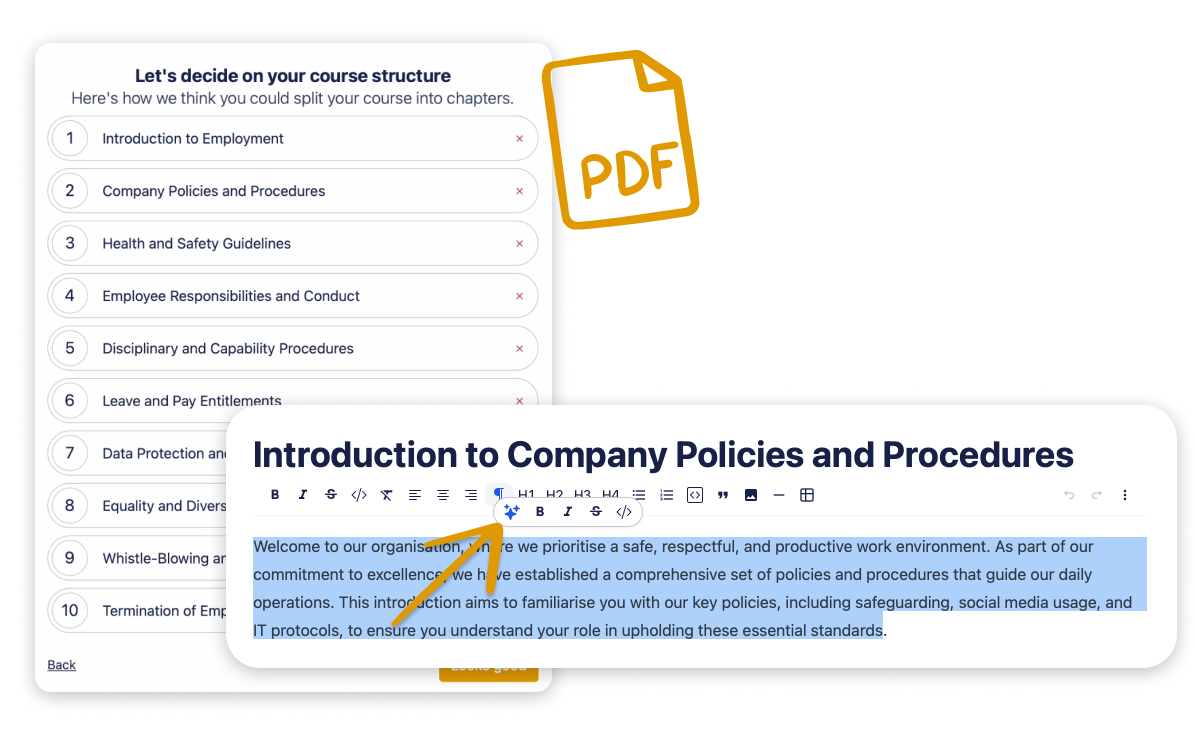 With the support of our smart AI tooling, get a head start when building your courses.