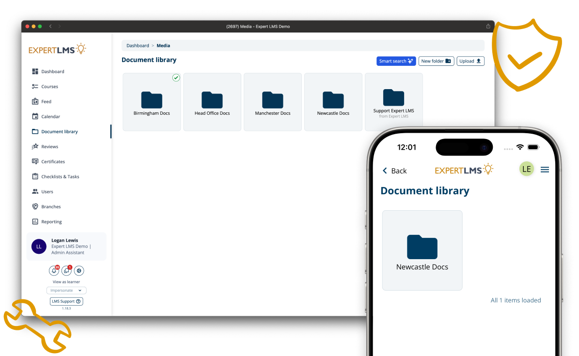 Bring all your documents into one easy-to-navigate hub. Policies, guides, templates, and other resources are organised for quick access, making it simple for learners and employees to find exactly what they need, when they need it.