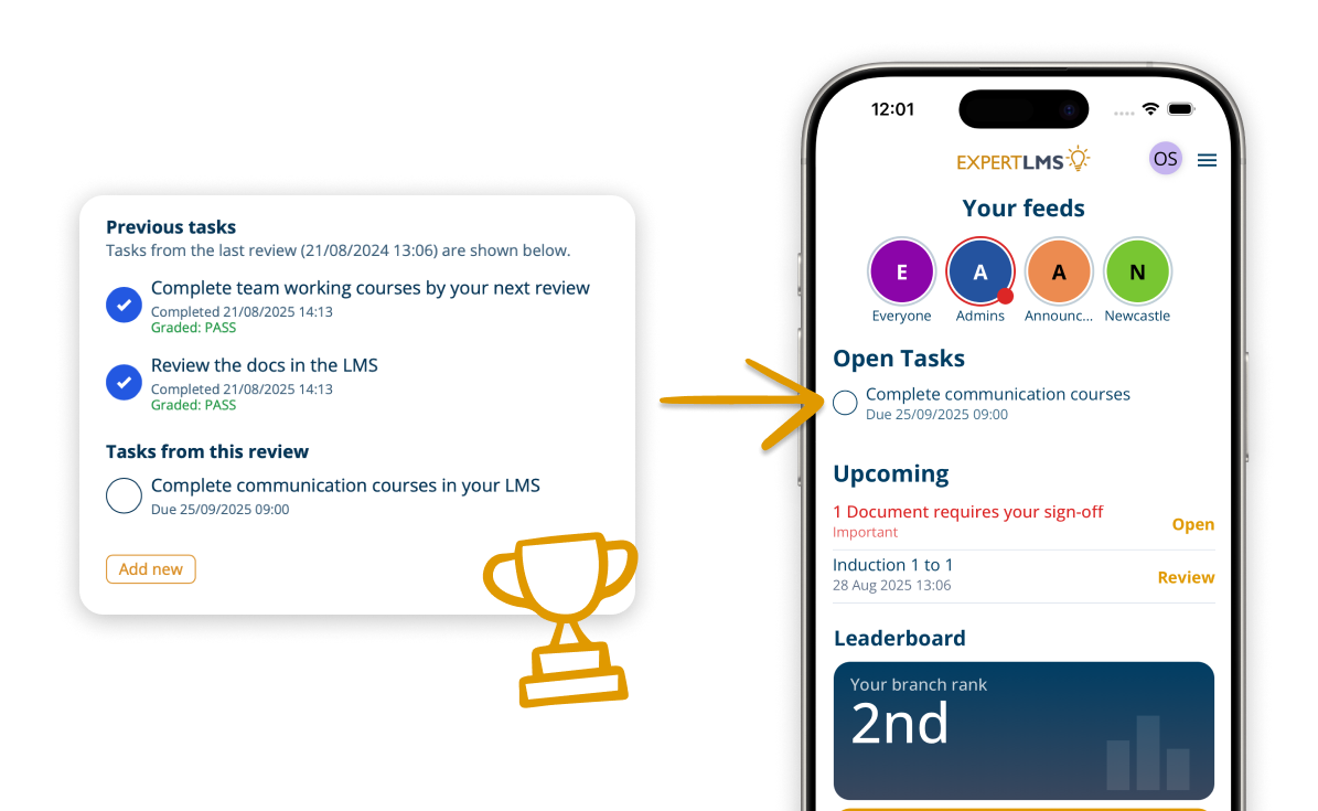 Appraisals open automatically based on job titles, departments or branches. This ensures reviews happen consistently and on time, removing manual admin.