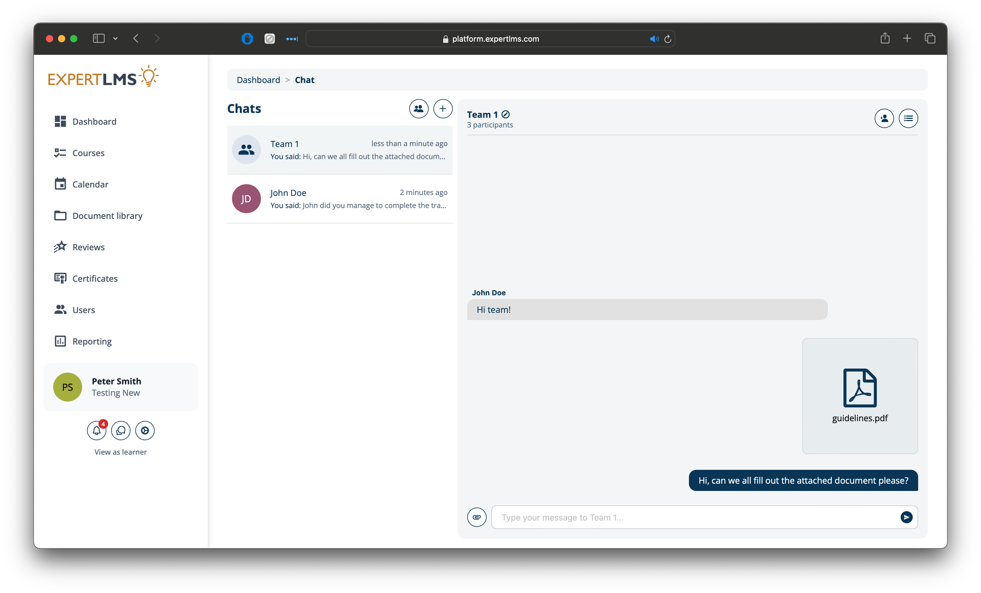 Transform the way you manage your entire team with Expert LMS's powerful instant messaging feature. This essential tool streamlines communication, making it easier than ever to connect with and support your learners in real time. Discover how instant messaging, along with our host of other innovative features, can simplify and enhance your training processes.