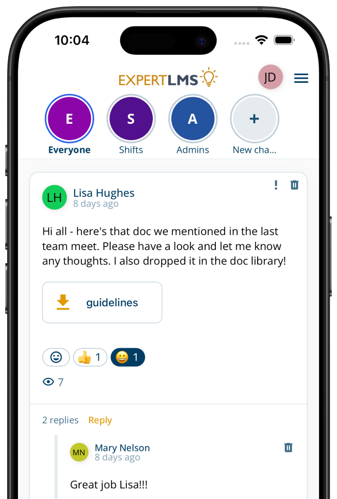 Expert LMS is designed for engaging your employees. Our online compliance focused LMS includes an engaging social feed feature at no additional cost, designed to enhance internal communication and collaboration. Employees can use the platform to discuss compliance topics, share insights, and ask questions in real-time.
